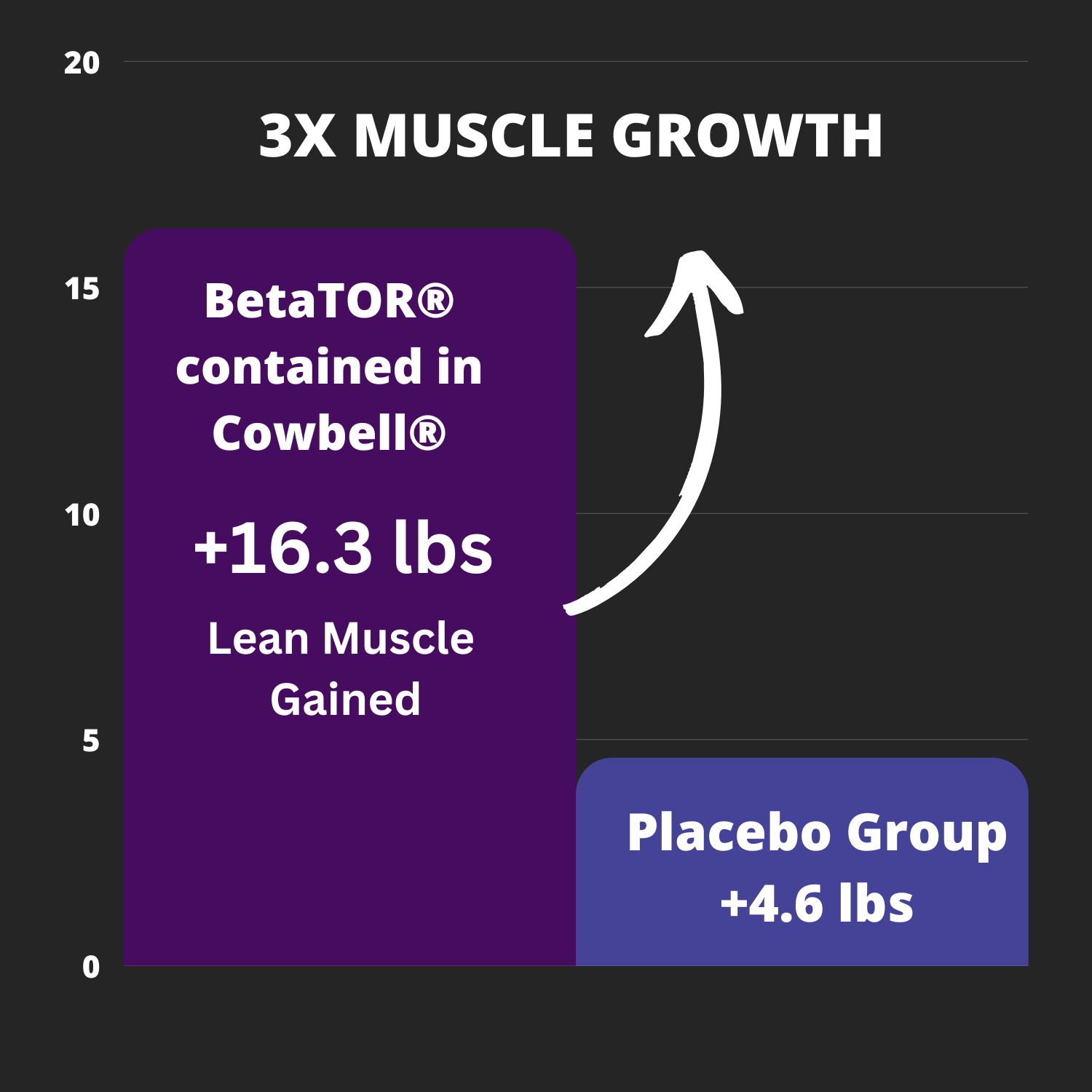 Subjects in a clinical study who combined exercise with BetaTOR gained an impressive 16.3 pounds of lean muscle while the Placebo Group only gained 4.6 pounds of muscle.