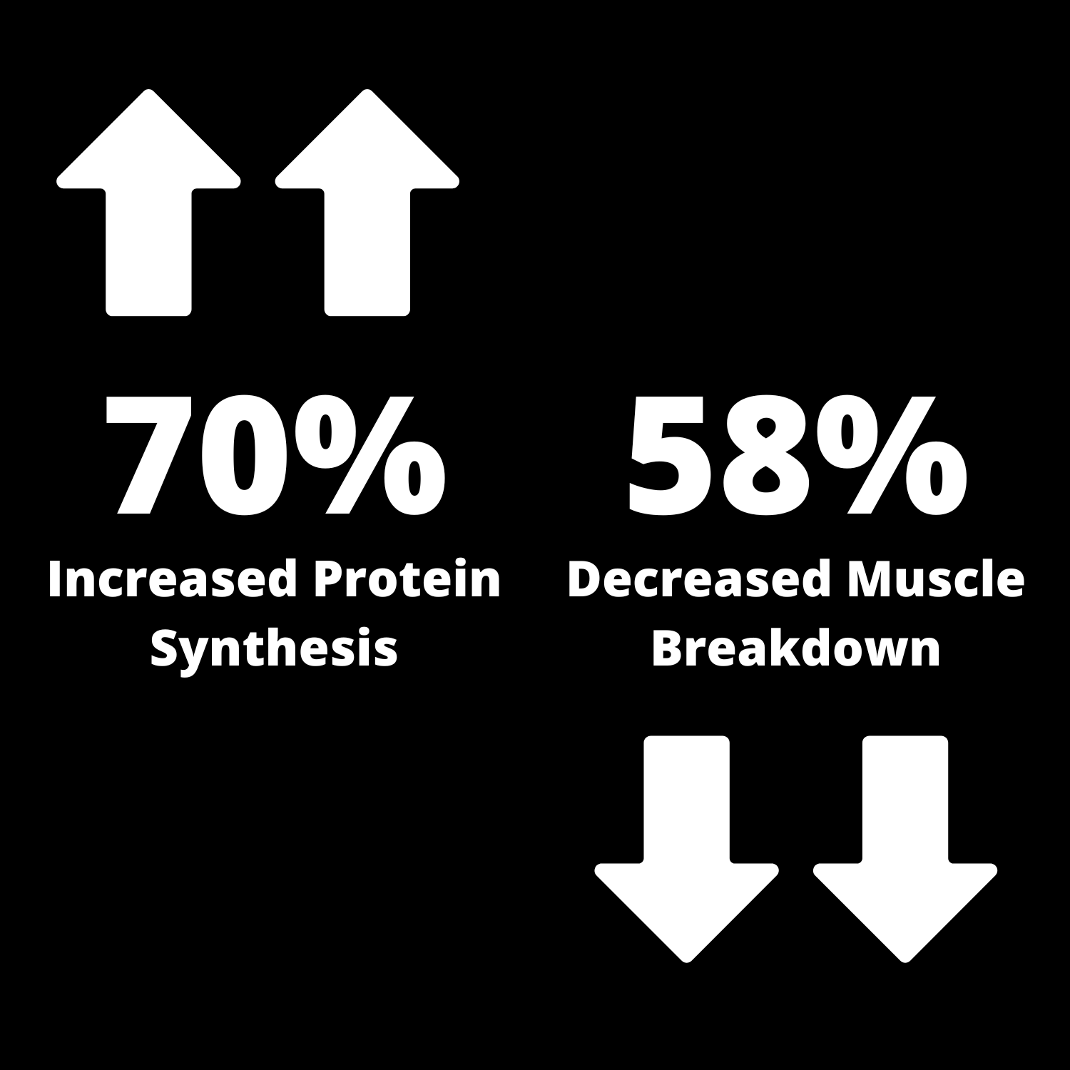 In another clinical study, subjects increased protein synthesis by more than 70% and reduced muscle breakdown by 58%.